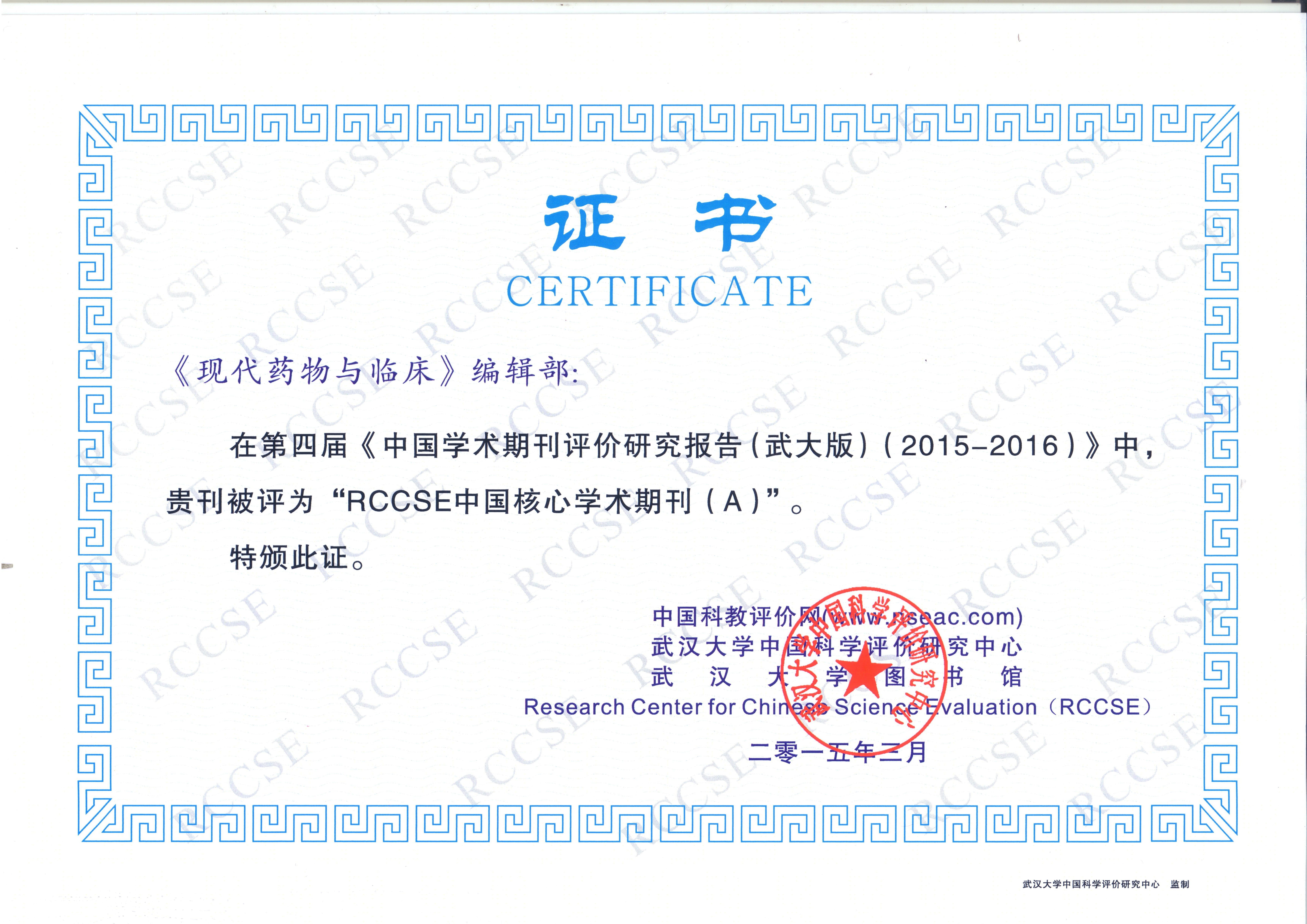 由武漢大學(xué)中國科學(xué)評(píng)價(jià)研究中心(RCCSE)、武漢大學(xué)圖書館、中國科教評(píng)價(jià)網(wǎng)(www.nseac.com)共同研制的第4版《RCCSE中國學(xué)術(shù)期刊評(píng)價(jià)研究報(bào)告——權(quán)威、核心學(xué)術(shù)期刊排行榜》已于近日完成,進(jìn)入本次評(píng)價(jià)的學(xué)術(shù)期刊共有6201種,在65個(gè)一級(jí)學(xué)科產(chǎn)生權(quán)威期刊(A+)316種,核心期刊(A和A-)1572種,準(zhǔn)核心的學(xué)術(shù)期刊1848種,一般期刊1828種,較差期刊637種?!吨胁菟帯冯s志被評(píng)為中醫(yī)學(xué)和中藥學(xué)類權(quán)威期刊,中醫(yī)學(xué)和中藥學(xué)類期刊中共有6種被評(píng)為中國權(quán)威學(xué)術(shù)期刊,分別為:《中草藥》《中國中藥雜志》《中國中西醫(yī)結(jié)合雜志》《針刺研究》《中華中醫(yī)藥雜志》《中國針灸》。本雜志社的《現(xiàn)代藥物與臨床雜志》被評(píng)為藥學(xué)類核心期刊。